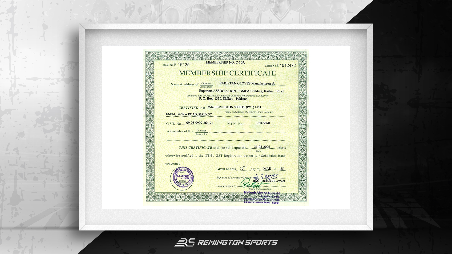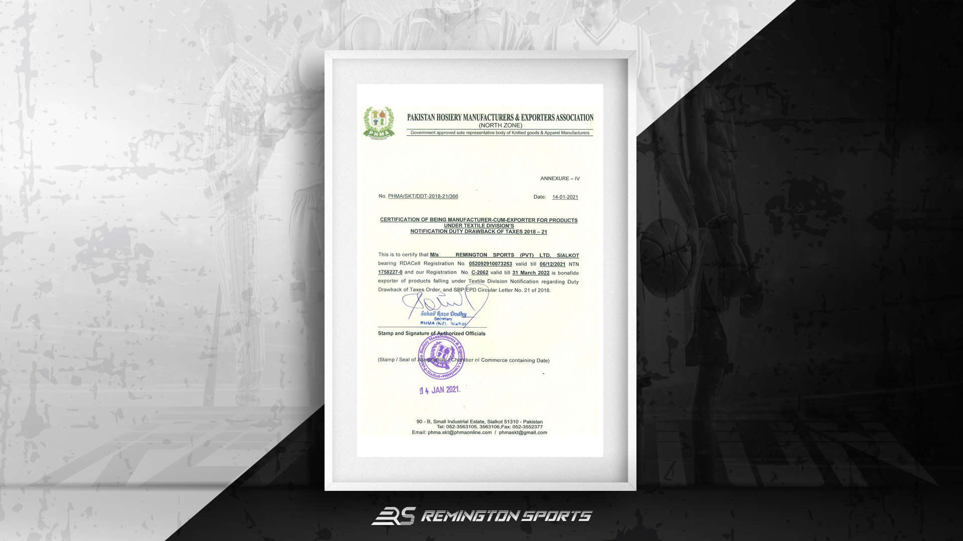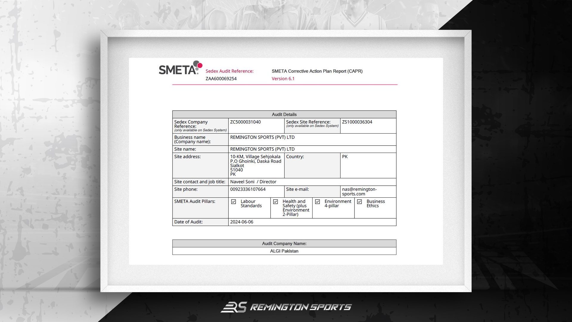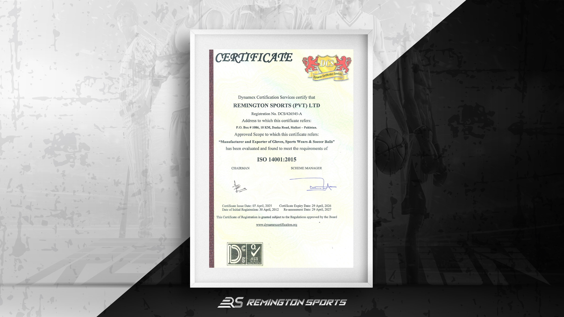 Remington Sports is certified with ISO 14001, CE, and SA8000, ensuring quality, sustainability, and ethical practices. These standards boost global trust and compliance.